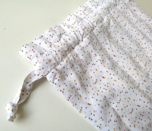 Dans les chutes de ce tissu, j’ai pu coudre ce pochon (patron maison) qui me sera bien utile dans ma valise pour y ranger sous-vêtements, chaussettes ou encore maillots de bain !