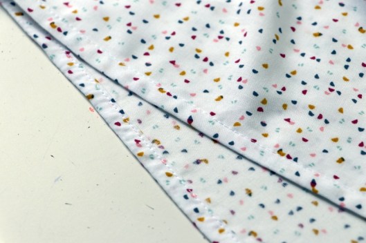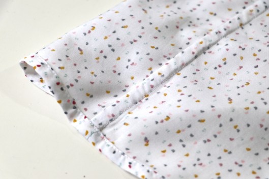 Pour la finition, il s’agit en guise d’ourlet, d’un double rentré de 0,7 cm :