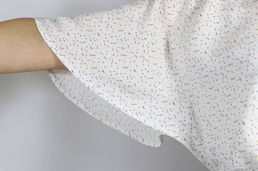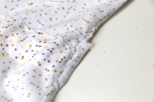 Ce que je trouve en revanche un peu moyen, c’est la jonction entre les manches dont l’ourlet est cousu et la couture des côtés :