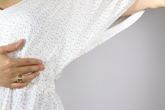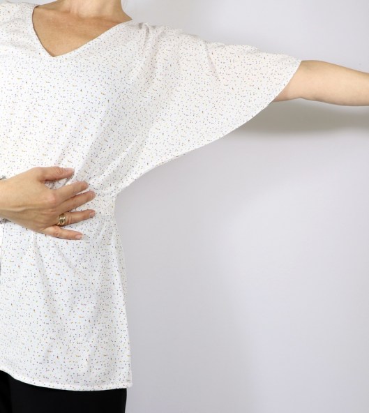 En tout cas, cette fameuse surpiqûre est bien pensée car elle permet de fermer l’emmanchure. On peut donc lever les bras sans montrer son soutien-gorge.