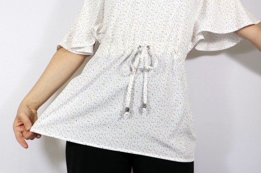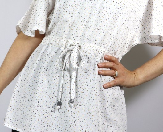 Au devant, il y a un lien qui permet d’ajuster la tunique comme on le souhaite :