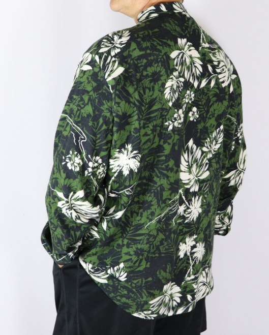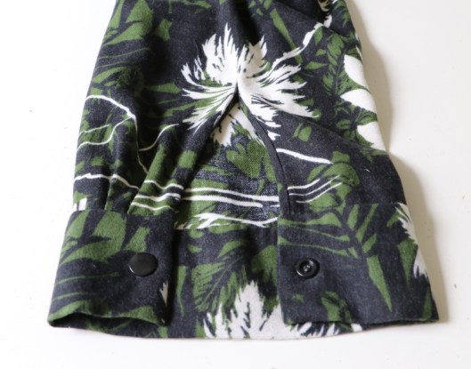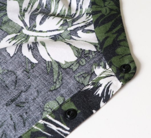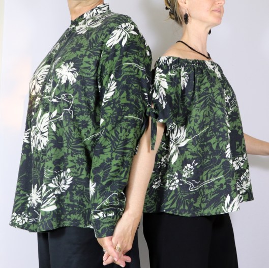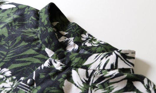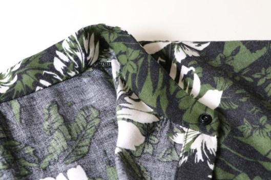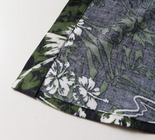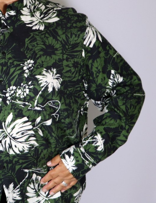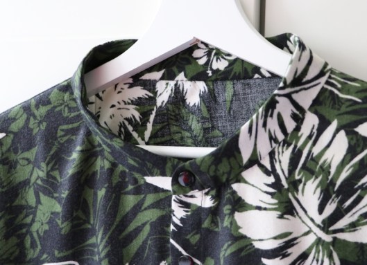 Une chemise aux couleurs des tropiques, de Hawaï, ça change du noir et de mon style en général, me direz-vous ! Il en va de même pour mon mari : cet imprimé ne fait également pas du tout partie de ses goûts… Alors pourquoi ai-je cousu ce tissu à la couleur et aux motifs improbables, me direz-vous ?! Et bien tout simplement parce que cette chemise sera portée lors de nos prochaines vacances en Tunisie : dans le club où nous allons, il y a quasi chaque soir des soirées à thèmes avec des codes couleurs pour les tenues vestimentaires. Et nous, et bien on aime bien jouer le jeu ! Cette chemise correspondra donc au thème nature/aventure. Et puis figurez-vous que je me suis cousu dans ce tissu deux petits hauts, j’aurai donc moi aussi ma tenue estivale ! On risque juste d’être un peu ridicules si on arrive habillés tous les deux avec le même tissu ! Bref, je vous raconterai ça avec photos à l’appui !