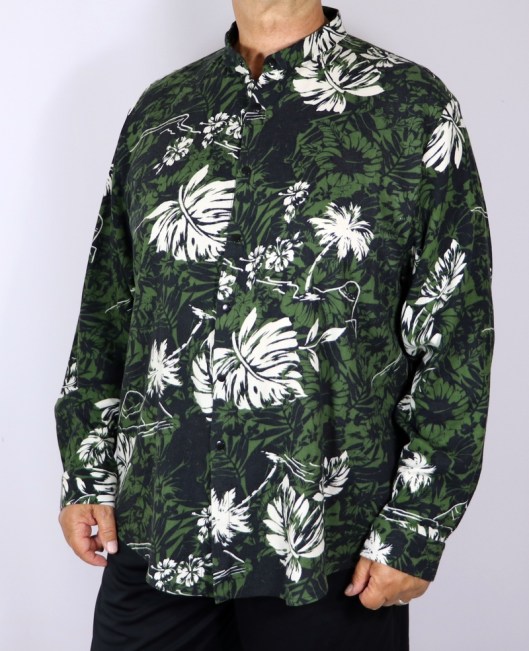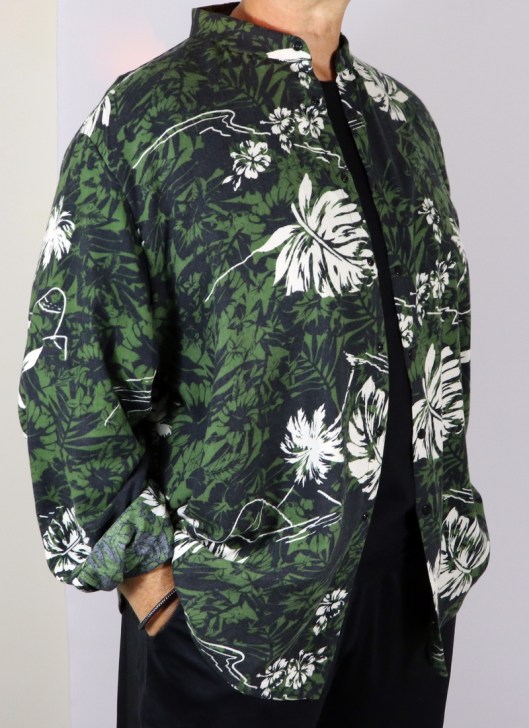 Mon mari m’a demandé de lui dupliquer sa chemise préférée en lin à col Mao (qu’est-ce qu’ils ont tous, ces hommes, à aimer le col Mao ?! 😉) et il porte du 3XL-60.
