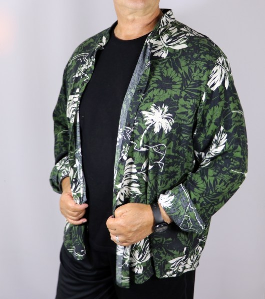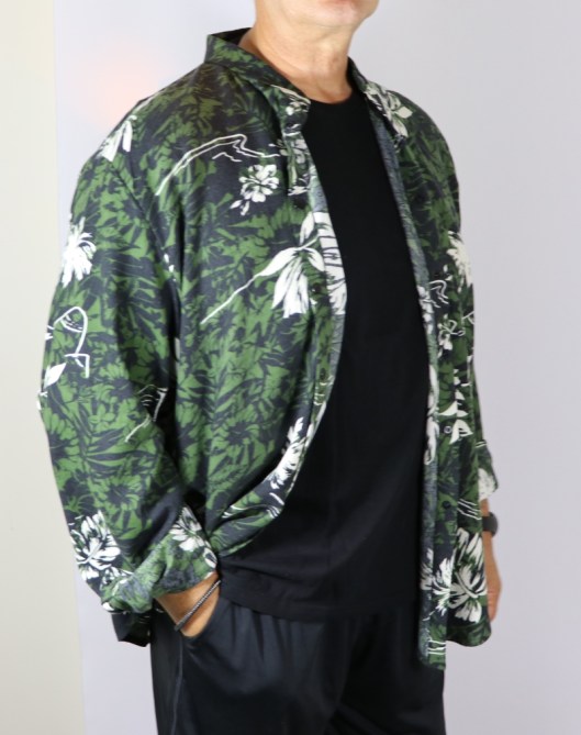 Je crois bien que j’ai trouvé le patron de base de chemise pour mon mari, suite aux ajustements que j’ai pu faire lors de la précédente version. Pour mémoire, j’ai pris la plus grande taille (54) que j’ai pas mal élargie au niveau des coutures latérales et des manches pour répondre à la morphologie mais aussi aux exigences de mon mari qui souhaitait une blouse ample et tout confort ! Comme vous pouvez le constater, j’ai procédé à d’autres modifications pour cette 2ème version : le plastron au devant a été supprimé et c’est donc devenu une chemise avec patte de boutonnage au devant. Et puis j’ai opté pour les manches longues.