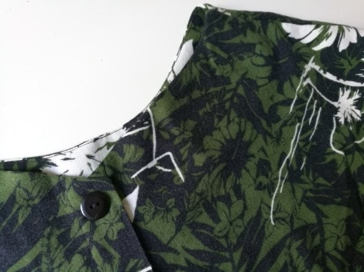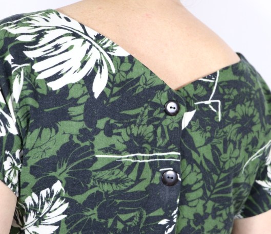 Pour la patte de boutonnage, j’ai pris des boutons de mon stock et je les ai cousus directement sans faire de boutonnières. Comme j’ai rétréci la hauteur de la partie buste, j’ai donc positionné les boutons en fonction.