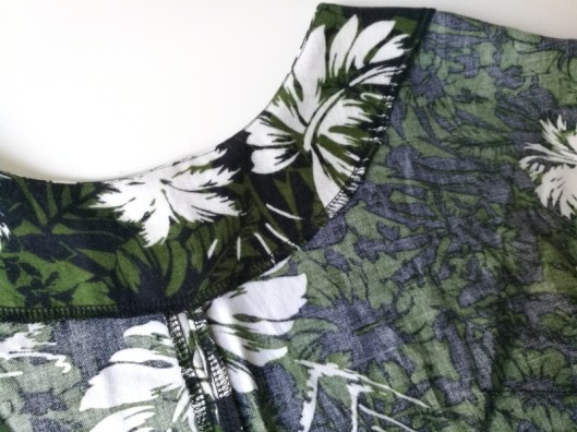 Alors déjà… par manque de tissu, il y a une couture au milieu devant… Avec cet imprimé, c’est vrai que ça ne se voit pas trop mais moi je le sais et donc ça ternit ma vision de ce haut !