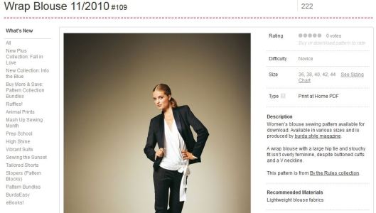 Il s’agit du modèle 109 du magazine Burda de novembre 2010. Ca date donc !!! C’est en fait la jolie réalisation de Tokad qui m’a donné la furieuse envie de coudre ce modèle ! J’avais heureusement ce magazine en ma possession. Pour celles et ceux qui ne l’ont pas, sachez que cette blouse est également disponible en patron PDF ici (en anglais).