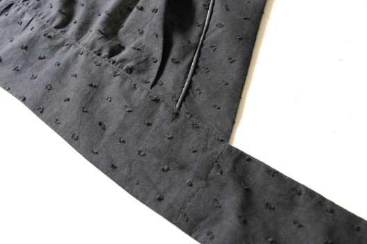 Quant aux finitions, j’ai préféré fixer à la main le poignet sur l’intérieur de la manche. Voici ce que ça donne sur l’envers :