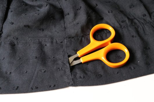 Les instructions disent de laisser une ouverture de 4 cm au niveau de la ceinture mais c’est hyper mal expliqué… J’ai donc fait au mieux…