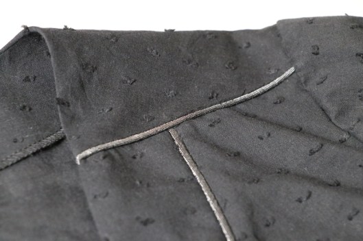 Passepoil que j’ai également décidé d’ajouter au niveau de l’empiècement des épaules. Pour info, c’est le dos qui vient se prolonger sur le devant, la couture d’assemblage se situe donc non pas au niveau des épaules mais au niveau du haut du devant.