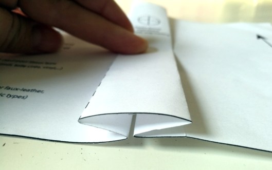 Pour la réalisation du pli plat de la poche C (pli rond), il faut tout simplement penser qu’il faut positionner bord à bord les deux lignes de pliure au centre, la pièce patron sera je pense plus parlante :
