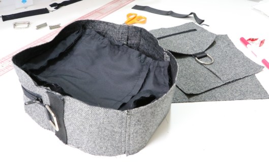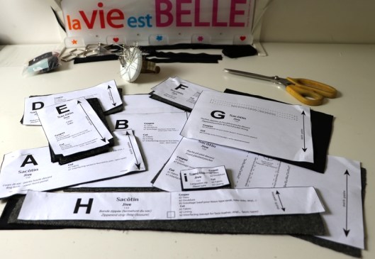 Voici toutes les pièces du patron coupées dans le tissu extérieur, la doublure et l’entoilage.