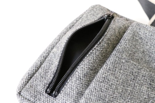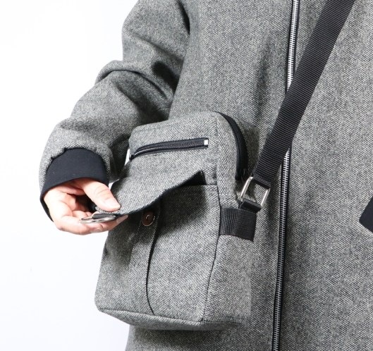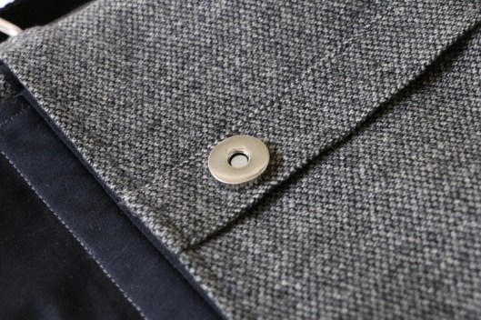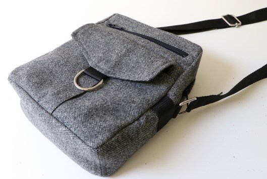 Côté tissus, Sacôtin conseille de prendre un tissu non extensible de poids moyen. Je voulais au départ partir sur une version féminine de ce sac et puis finalement j’ai choisi un tissu mixte : les chutes de lainage d’une veste que j’ai cousue il y a quelques mois, le manteau Michel de Chez Machine.