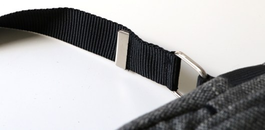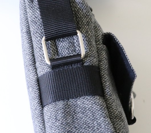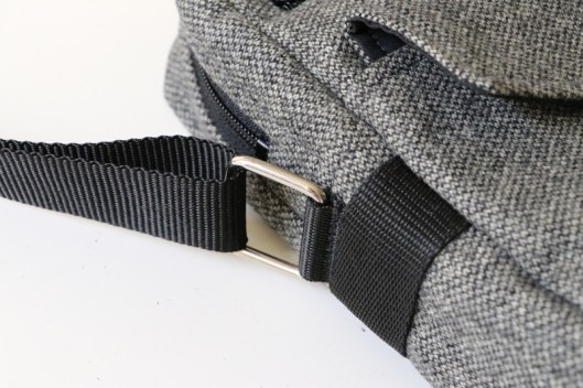 La sangle vient se fixer sur les côtés du sac grâce à des boucles rectangulaires.