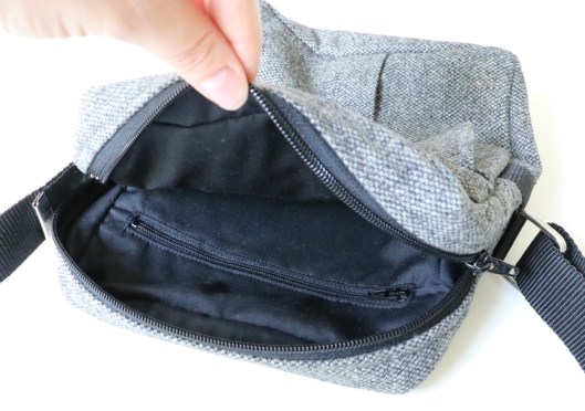 A l’intérieur, on retrouve une poche passepoilée zippée (tuto ici) :