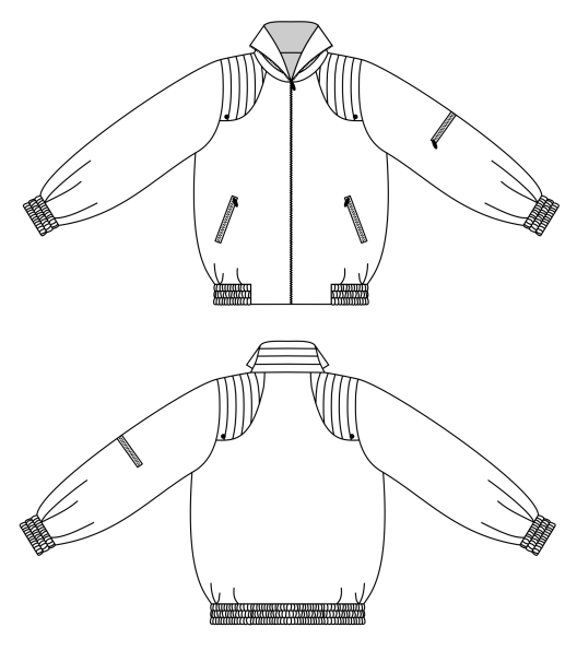 Voici la description de ce patron, le blouson Cardan, par sa créatrice : « Blouson motard en simili cuir, fermé par une fermeture éclair, avec des empiècements décoratifs aux épaules, un col montant, et des poignets et une ceinture élastiqués. »