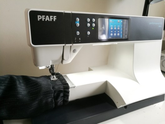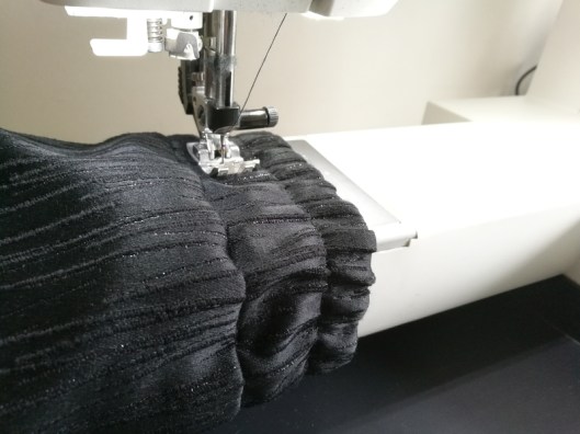 D’ailleurs, en ce qui concerne ces fameuses surpiqûres, j’avais un peu peur et je me disais que j’allais galérer un maximum mais en fait, le poignet est suffisamment large pour l’insérer sur le bras libre de la machine à coudre : c’est en effet parfait pour les pièces tubulaires.