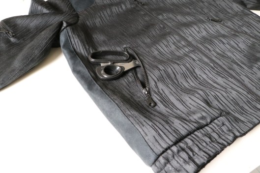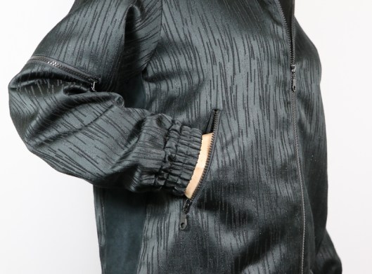 Et il y a trois poches passepoilées zippées extérieures dont une sur la manche.