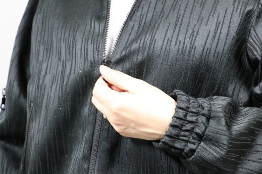La veste est fermée au milieu devant par un zip :