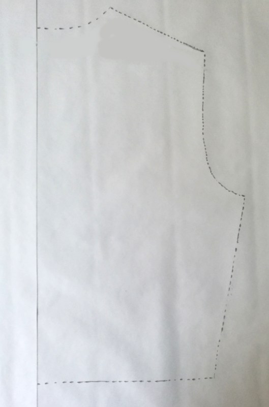 En premier lieu, il convient de tracer le contour de la pièce patron dos sur une feuille. Ici mon patron inclut les marges de couture.