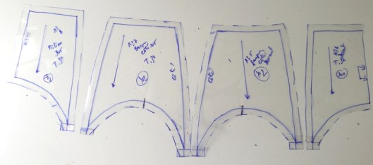 Les pièces patron qui forment l’empiècement/basque devant et dos :