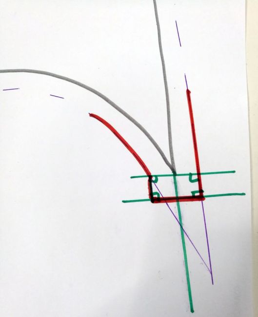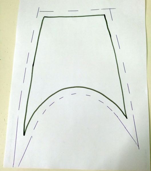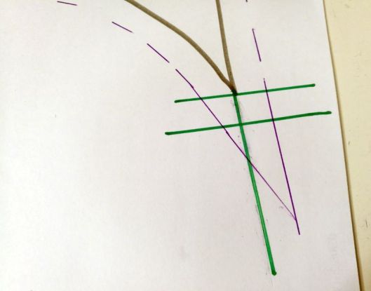 2/ prolonger la ligne de couture (ici en vert) :