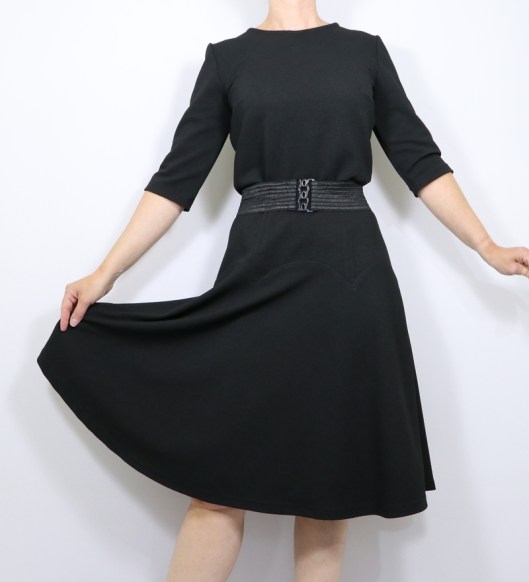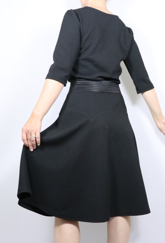 Voilà pour cette robe, je suis ravie d’avoir enfin pris mon courage à deux mains pour la coudre : c’est ma petite robe noire de cet automne !