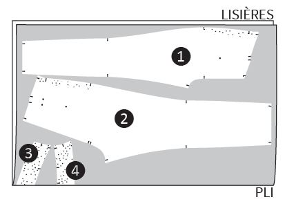 Côté niveau de difficulté : ce patron est indiqué comme étant débutant, ce que je confirme. Il n’y a que 4 pièces patron : devant, dos et parementures. Un assemblage des plus simples donc !
