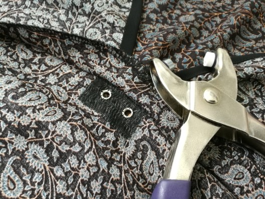 Burda propose de coudre des boutonnières, j’ai préféré fixé des œillets :