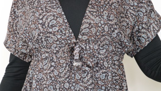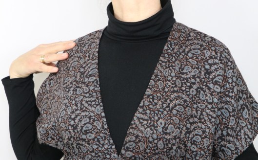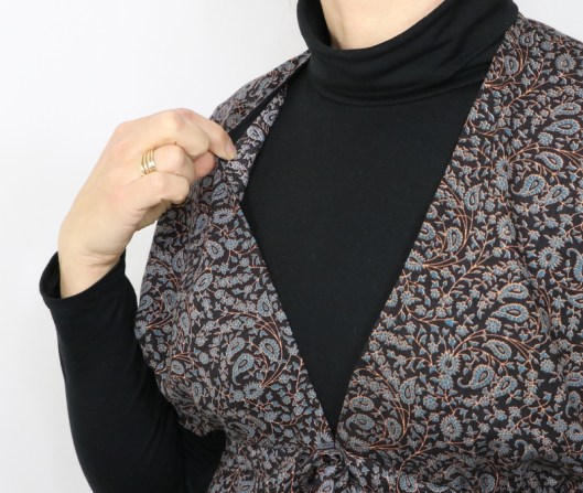 Le décolleté de cette tunique est très plongeant, port d’un débardeur obligatoire l’été ou d’un sous-pull en saison hivernale comme ici !