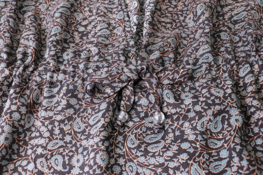 Pour cette version, j’ai choisi d’utiliser les chutes de cette viscose imprimée que j’avais acheté chez Stop tissus à un prix imbattable : 2€/m. Avec ce tissu, j’ai pu réaliser une robe longue Burda et une jupe longe bohème de Vanessa Pouzet :