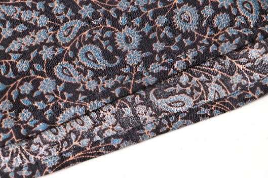 J’ai choisi un biais en voile acheté chez Fil 200 (0,80€/m) car j’avais lu/vu quelque part que quelqu’un l’avait utilisé. C’est effectivement très bien pour les tissus fin comme ici de la viscose.