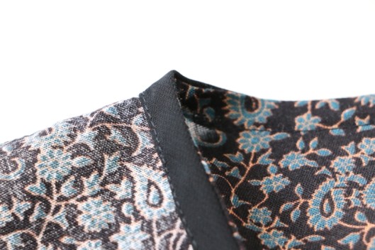 Côté finitions, j’ai posé un biais rapporté au niveau de l’encolure devant et dos.