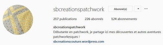 Sur mon second compte, exclusivement réservé au patchwork, 226 personnes me suivent. Compte que j’ai très peu alimenté en 2019…