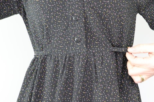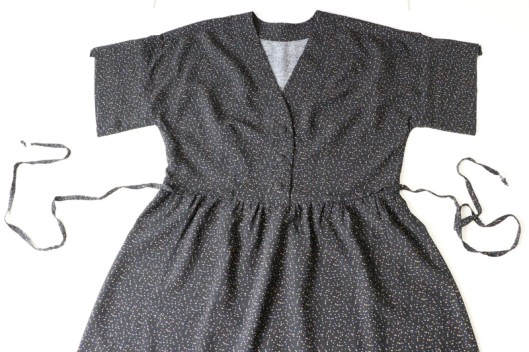 Pour cintrer cette tunique, il est prévu dans le patron, des liens qu’on vient nouer au dos. Ces liens sont insérés dans la couture des pinces et je trouve ça des plus astucieux !