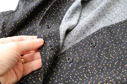 J’avais envie de changer de l’encolure tunisienne et de coudre la version avec patte de boutonnage. J’aime bien ce décolleté même si c’est vrai que c’est moins original :