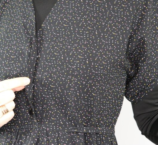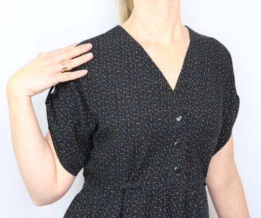Par contre faite attention de bien choisir votre taille, histoire d’être sûre que vous pourrez bien enfiler votre robe : bien que la robe ait de l’aisance, elle reste semi-ajustée avec des pinces de taille devant et dos et il n’y a pas de zip pour ouvrir davantage la robe.