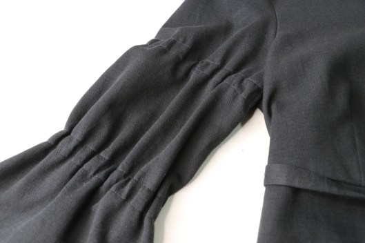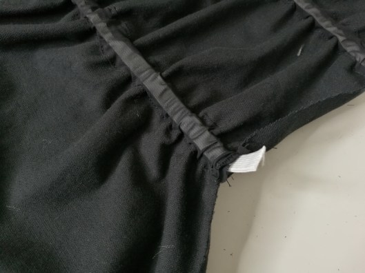 J’ai ensuite piqué les extrémités des élastiques dans la marge de couture, puis recoupé l’excédent avant de refermer la manche.