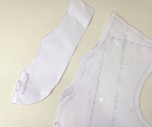 Pour ce faire, j’ai tout d’abord ajouter les valeurs de couture au niveau de l’encolure devant et dos puis j’ai pris l’empreinte de l’encolure tunisienne et celle du dos sur une largeur de 6 cm, valeurs de couture comprises.