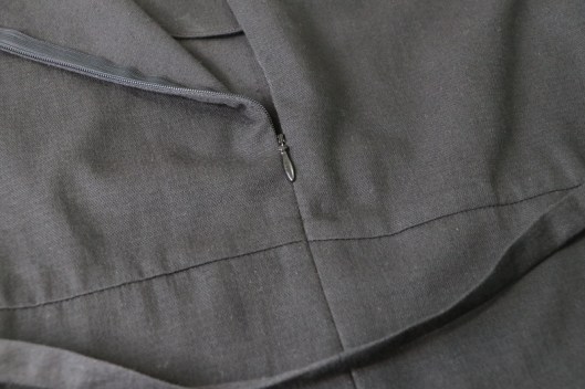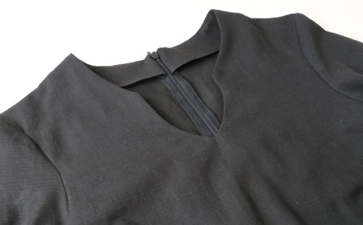 A l’essayage, j’ai trouvé que la blouse n’était pas assez cintrée. Je peux d’ailleurs l’enfiler sans toucher au zip, c’est donc qu’il y a de l’aisance !