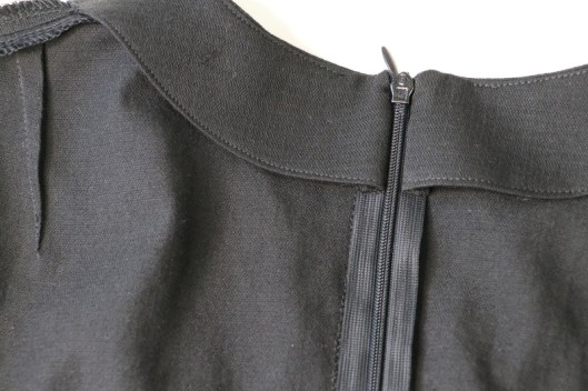 A l’essayage, j’ai trouvé que la blouse n’était pas assez cintrée. Je peux d’ailleurs l’enfiler sans toucher au zip, c’est donc qu’il y a de l’aisance !
