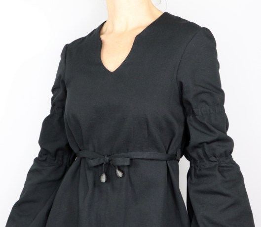 Très joli modèle original et réalisation impeccable comme d’habitude. Je pense que l’effet « renaissance » des manches peut être accentué en faisant les manches plus larges et et en utilisant n tissu très fin, une idée pour l’été ! Bon week-end !