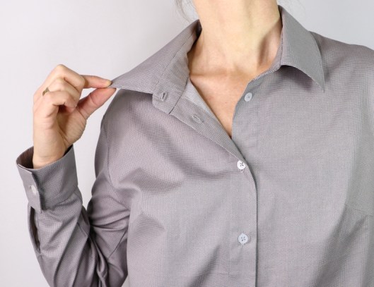 Cette chemise reprend donc tous les codes de la chemise avec notamment ici le pied de col et le col chemisier.