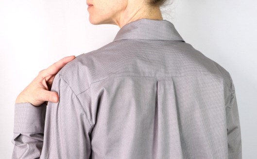 En résumé, je me demandais si, plutôt que de réduire la longueur d’épaule, tu ne devrais pas carrément coudre cette chemise une taille en dessous.