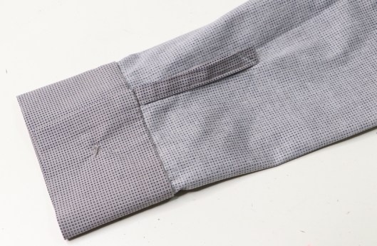 Le poignet se termine avec une patte. J’aime bien ce détail. La question de savoir s’il fallait positionner la patte en dessous ou au dessus s’est posée. J’ai testé les deux et préféré opter pour la patte positionnée sur le dessus. C’est à mon sens plus une question de goût et de style. Au final on fait comme on veut. C’est ça aussi la couture !