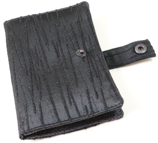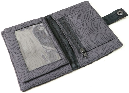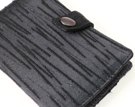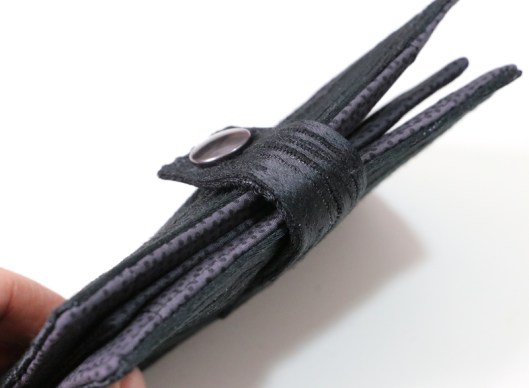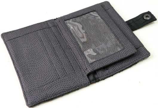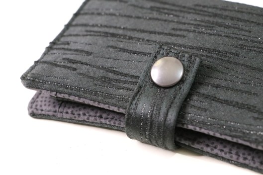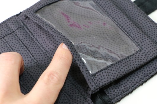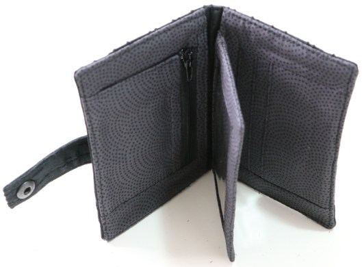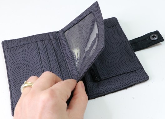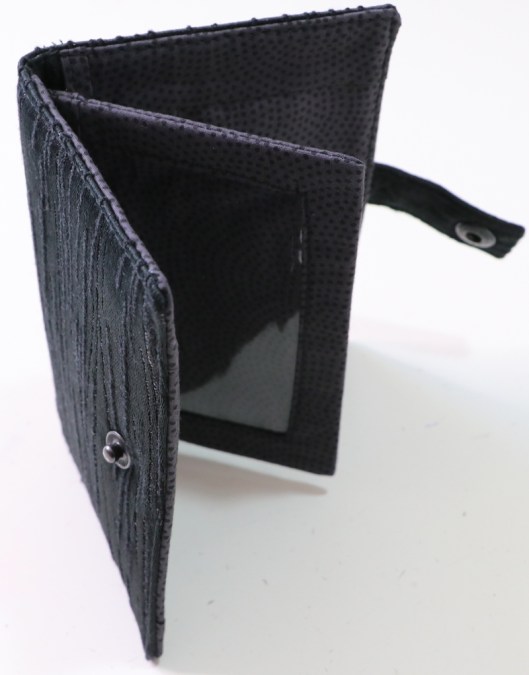 Le portefeuille se ferme si on le souhaite par un bouton pression, ce que j’ai fait. J’ai trouvé la méthode astucieuse pour la languette car c’est très simple en terme de réalisation pour un résultat vraiment chouette.