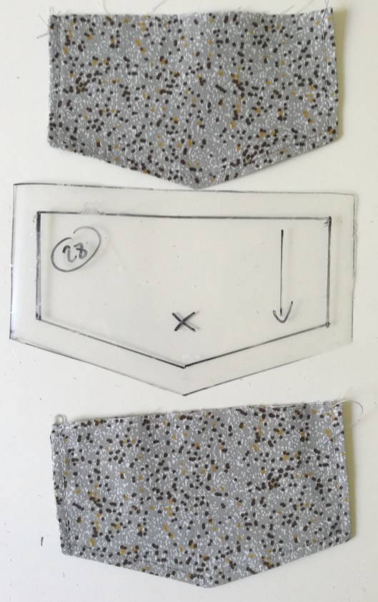 Préparer les rabats de poche en suivant les instructions de Burda. Les surpiqûres sont ici sont de 5 mm au lieu de 7 mm.