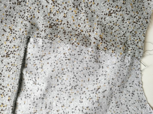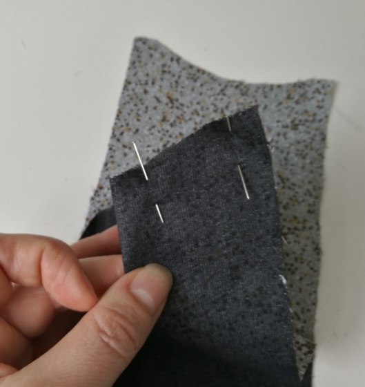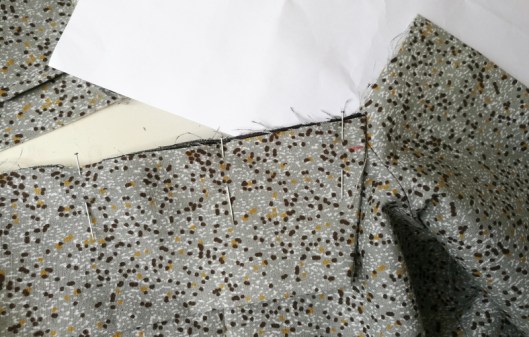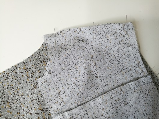 On épingle jusqu’en haut, jusqu’à la couture d’épaule :