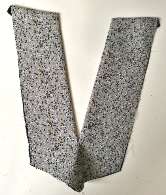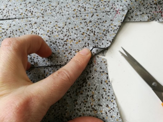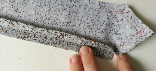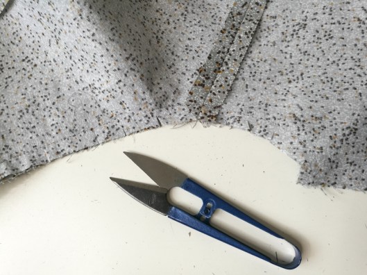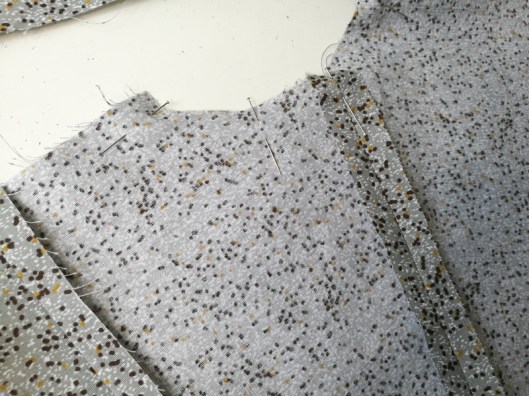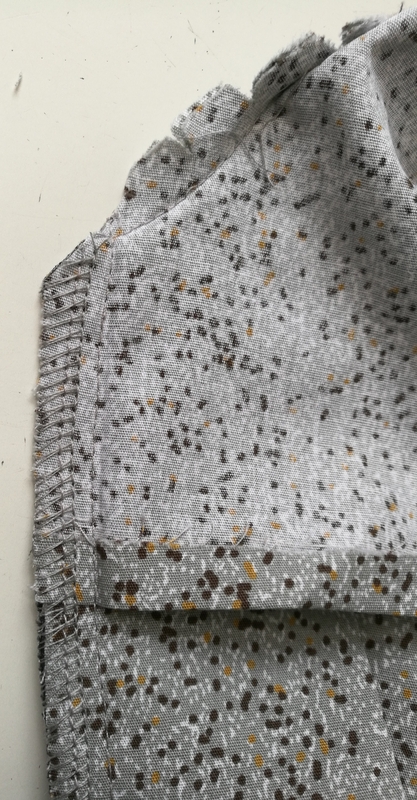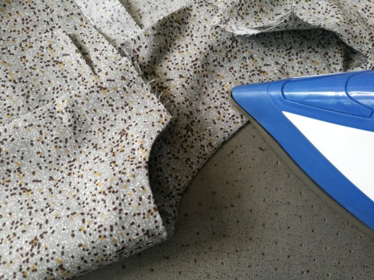 On passe ensuite à la partie la plus technique de ce patron… J’ai entoilé le parement comme recommandé par Burda :