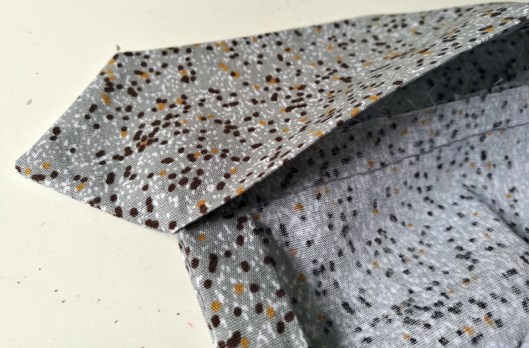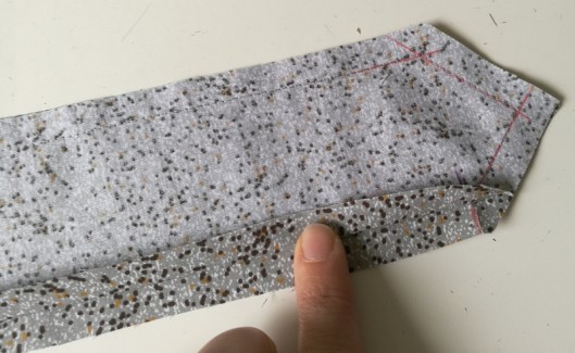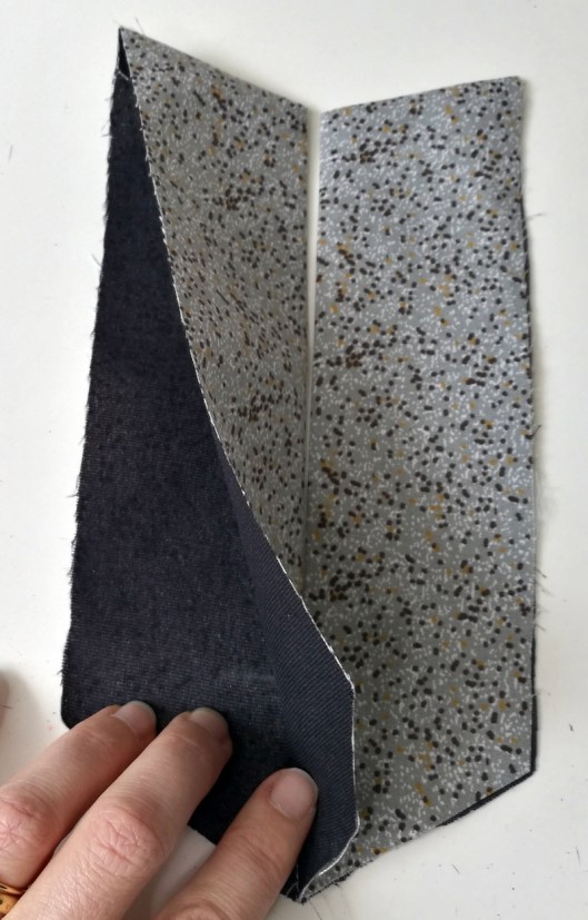 Retourner sur l’endroit puis presser au fer les bords supérieurs et la pliure centrale :